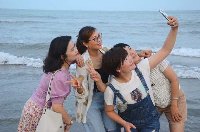 晚餐結束,一行人到海邊散步。此時(shí),暑熱未完全散去,海水已經(jīng)微涼。大家不約而同淌到淺海岸邊,感受從腳底涌上心脾的清涼,有的還從戲水中找回一點(diǎn)童真。
