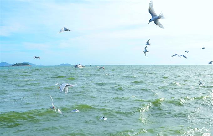 辦好入住,大家便乘船出海游玩。一望無(wú)際的海平面,起伏跌宕的海浪,讓大家領(lǐng)略到獨特的海上魅力。拖網(wǎng)打漁起網(wǎng)時(shí),海鷗興奮地來(lái)回穿梭,猶如在海上開(kāi)起了狂歡派對。