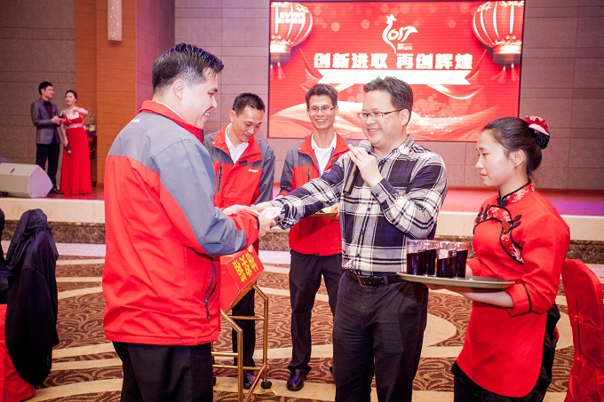 一曲由青春美少女演繹的開(kāi)場(chǎng)舞拉開(kāi)了晚宴序幕,接著(zhù)是劉總上臺致詞。劉總以幽默的語(yǔ)言,曬出了過(guò)去一年來(lái)的喜人成績(jì)單,特別是地產(chǎn)、酒店均有了大幅度的增長(cháng),感謝大家在各個(gè)環(huán)節的辛勤付出。最后,劉總邀請大家共同舉起酒杯,在向大家及家人拜個(gè)早年的同時(shí),號召大家在新一年繼續攜手共進(jìn),共同創(chuàng )造裕華新的輝煌。