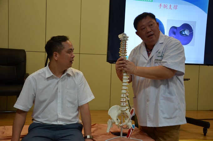 首先,陳教授針對現場(chǎng)辦公室職員多的特點(diǎn),羅列出一些辦公室常見(jiàn)的手、腰脊等常見(jiàn)疼痛問(wèn)題,通過(guò)圖片分析了問(wèn)題的起因,展示不正確的辦公坐姿,及不規范辦公輔助工具的危害。當中穿插介紹了其曾接觸過(guò)類(lèi)似病例,讓大家更全面地了解情況。